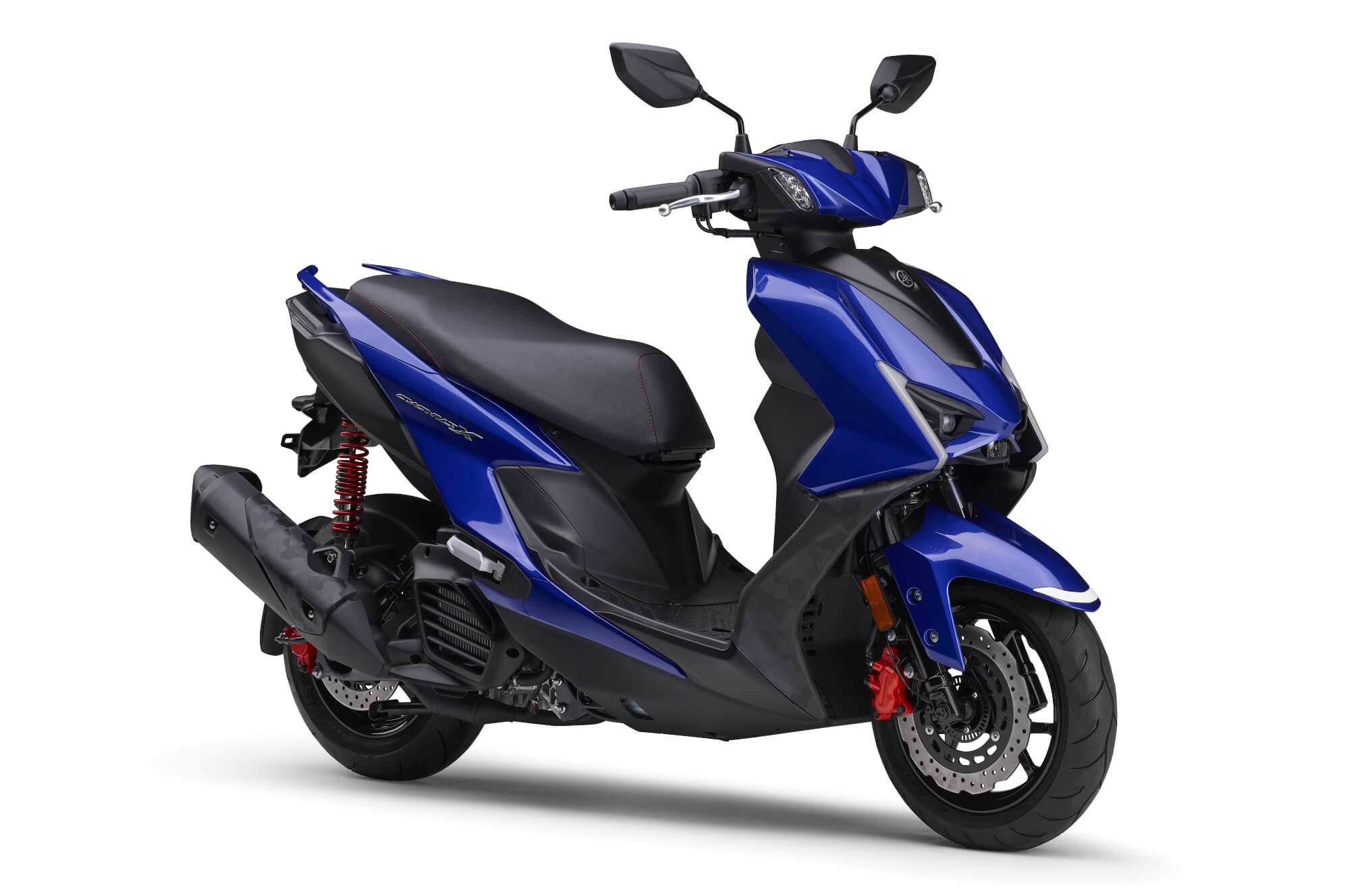 フロントビューは、すべてのラインを車両前方へと集中させることで、静止時でも今にも前方へ飛び出そうとする力強さを表現。さらに、ハンドルまわりのハンドルカバーをコンパクトにまとめ、ボディサイドを内側へ絞り込むことで、歴代のCYGNUSとも一線を画す圧倒的な凝縮感を創出。俊敏な走りをライダーに直感させる。
